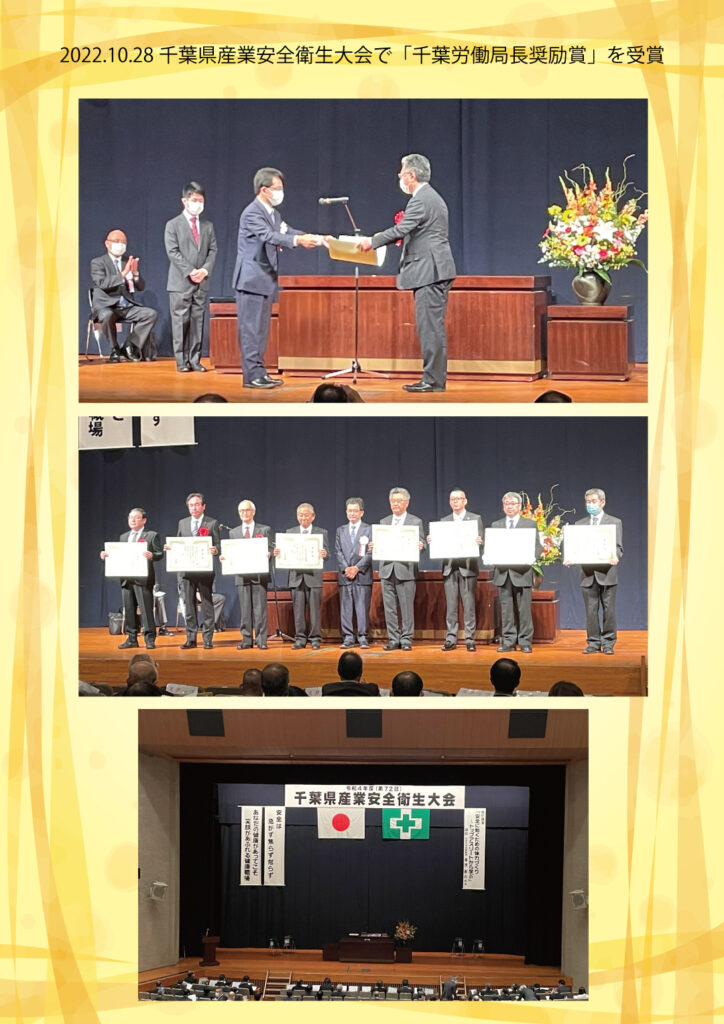 10月28日(金)に千葉県産業安全衛生大会が行われ、当社で施工した館山警察署庁舎建築工事が、「千葉労働局長奨励賞」を受賞しました。大変名誉ある賞をいただき、ありがとうございます。