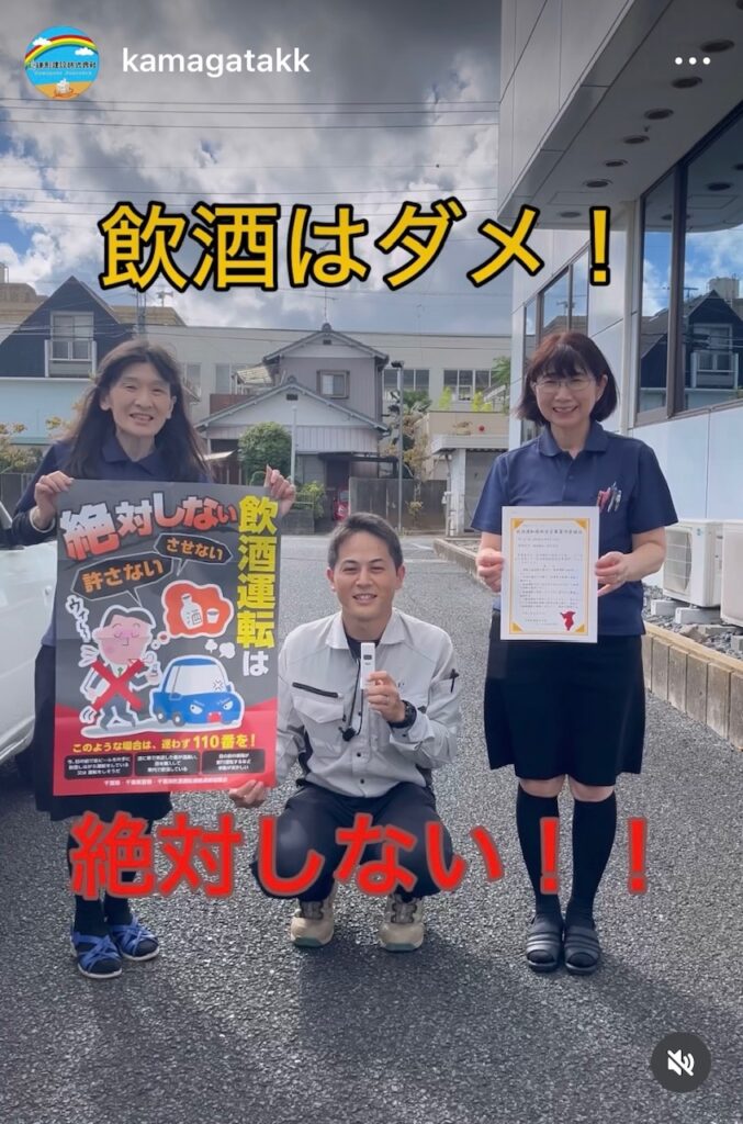 鎌形建設は『飲酒運転根絶宣言事業所』として登録をし、先日、登録証が届きました。