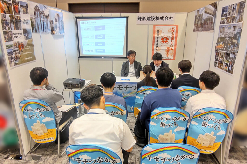 「建設業企業研究セミナー」とは、建築業界へ就職を希望する学生の皆様に、人事担当者が、会社、仕事内容、