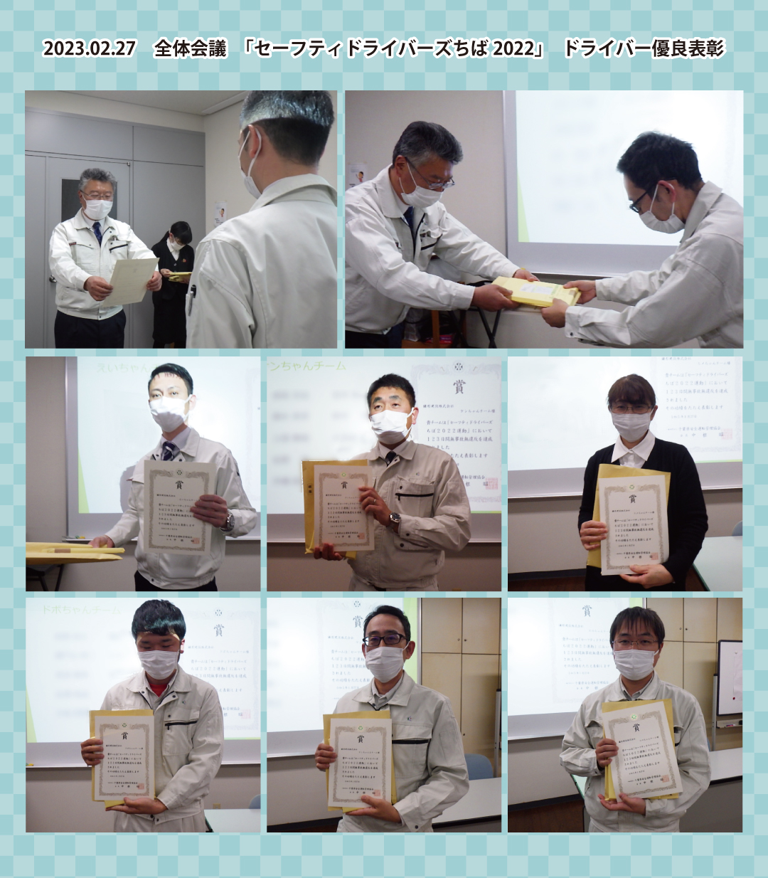全体会議で、ドライバー優良表彰が行われました。