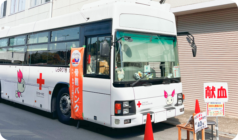 体を動かして健康に働けることに感謝すると同時に、困っている方の助けになりたい。そんな想いのもと、鎌形建設では献血への協力を社員に積極的に呼びかけています。本社近くにある多古町役場が献血会場になる際は、ほとんど毎回、社員が足を運んで参加させていただいています。