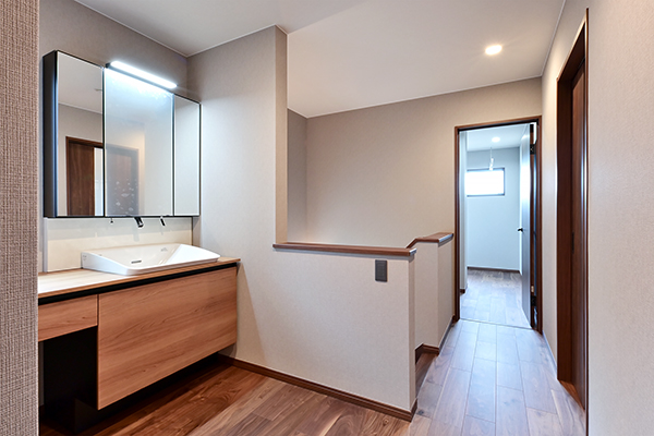 友達の家や、SNSで調べていたので、理想、イメージはなんとなく持っていたので 叩き台からだいぶ変更してもらいました。ベランダを無くしたり、玄関を広くしたり。 また、トイレ、お風呂に窓をつけないなど、かなり意見を言わせていただきました。 考えを直接伝えられたので良かったです。 逆に、内装はほとんど提案してもらいました。そこまでイメージが持てていなかったので 全体的に落ち着いた色、グレイに似合う色で提案してもらいました。