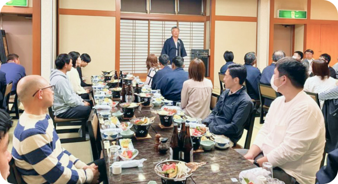 年間の目標数字を達成した場合に、特別手当として社員旅行を開催します。過去には台湾、広島、石川、仙台、山梨などに行きました。各地の名所や名物、温泉を楽しみリフレッシュします。