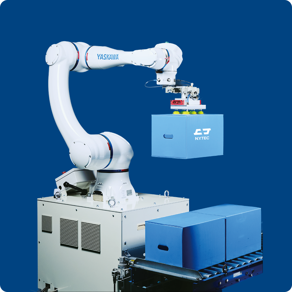 これまで培ってきた当社の開発・製造技術やノウハウを活かし、進化するものづくりの現場を支え、効率化を叶える積み付け協働型ロボットです。