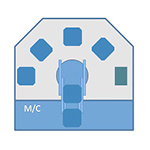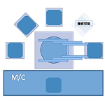 旋回テ-ブル上に2個のパレットを積載します。反M/C側に積載するパレットで、次加工ワ-クのセットアップを行い、M/C側へ旋回移載させます。