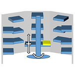 ダイレクトターンの動きに加え、上下にストロークを持たせたものです。段取台で加工済ワークの搬出と次加工ワークのセットアップを行います。