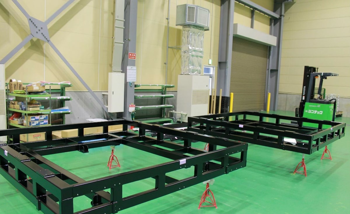 N.Y.TECでは、多数の工作機械(M/C)に不随するストッカーの製作実績があり、そのノウハウを基に、自動パレット搬送システムの製作も行っています。パレットにワークを載せたまま安全に搬送、保管が可能です。